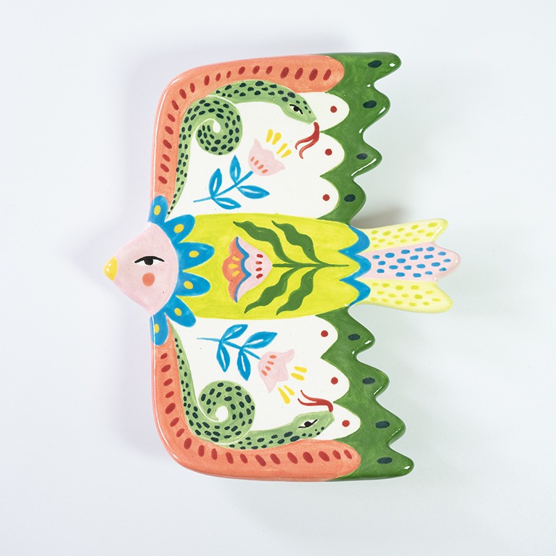Adorno de cerámica hecho a mano y decorado con engobes y pigmentos